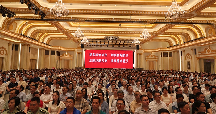市委市政府贯彻落实习近平生态文明思想,吹响打好污染防治攻坚战冲锋号 向环境污染宣战共同把堡垒拿下 6月26日下午,市委市政府召开全市向环境污染宣战大会,对生态文明建设作出最新部署,要求全市上下以习近平生态文明思想为指导,牢固树立“四个意识”,加快推进产业转型升级,提升绿色发展水平,坚定不移做好生态环保工作,共同拿下环境污染这个“堡垒”,以实际行动坚决打好污染防治攻坚战。市委书记韩立明、省环保厅厅长王天琦出席会议并讲话。市委副书记、市长史立军作工作部署。市委常委、常务副市长杨杰主持。